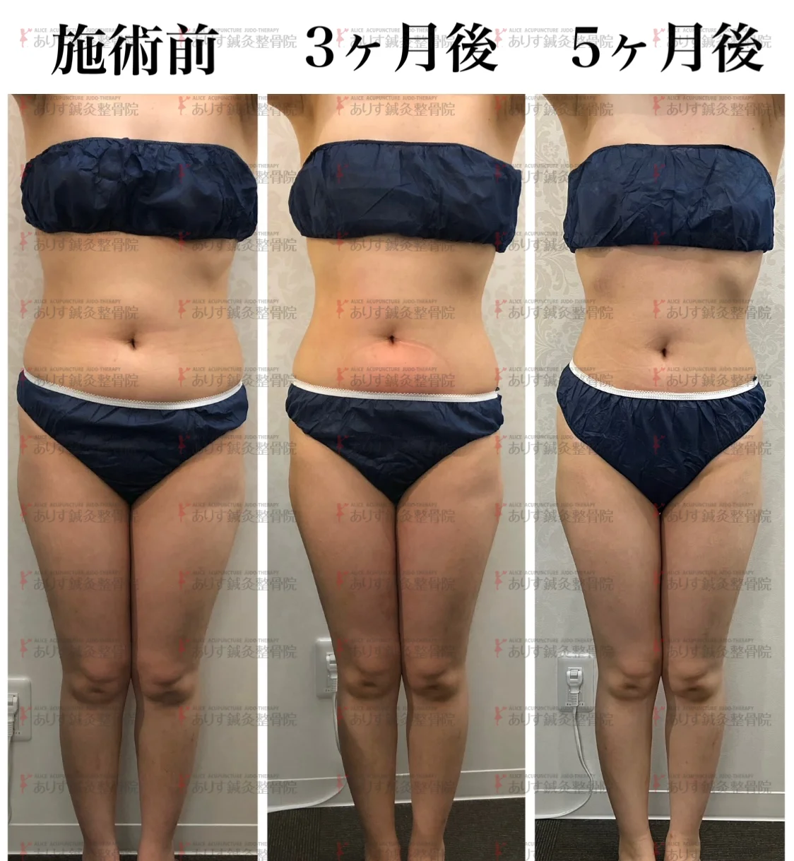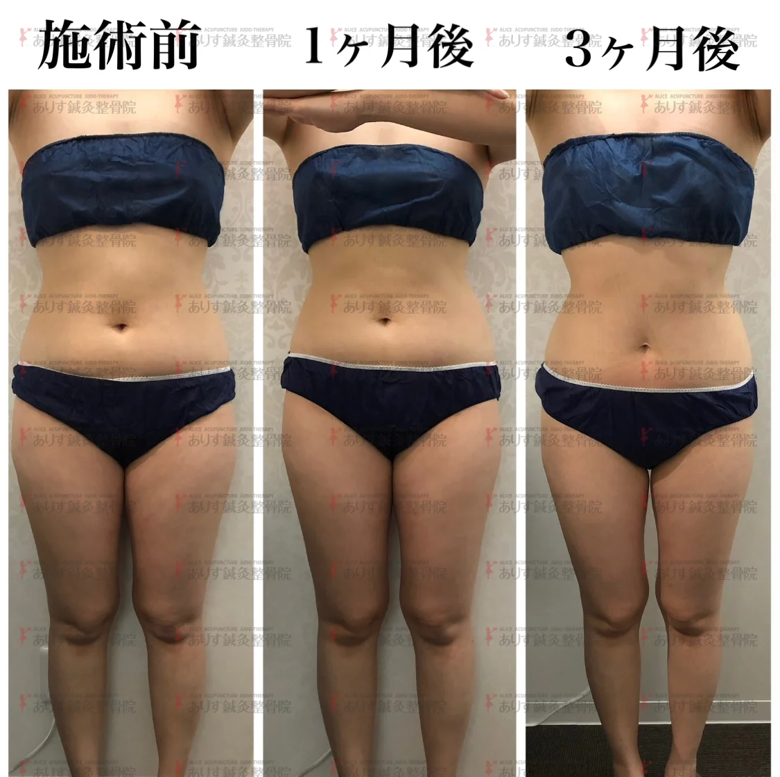 施術後は脂肪除去マッサージをします。このマッサージによって、スムーズに脂肪細胞が体外へと排出されます♪お客様のビフォーアフター