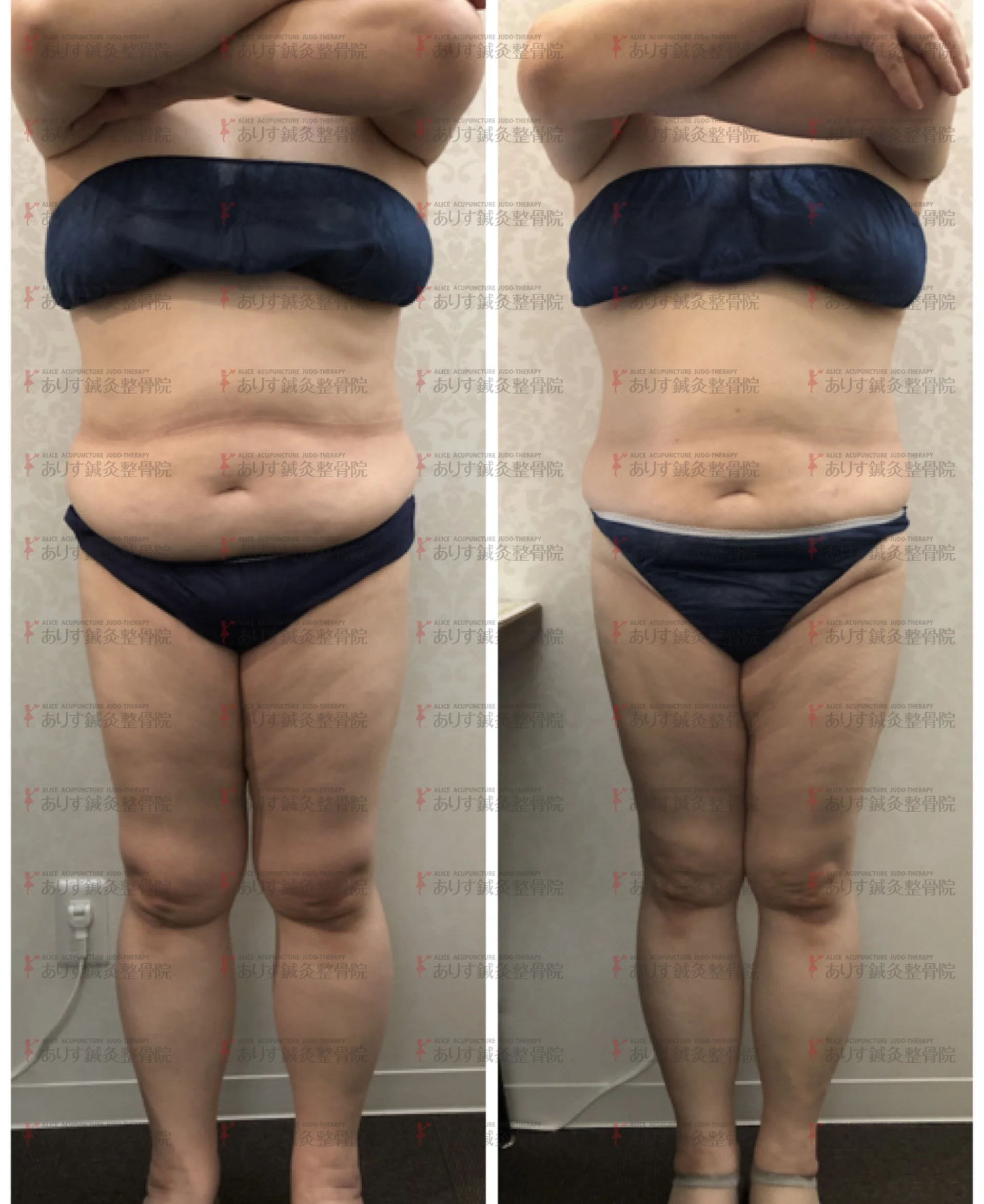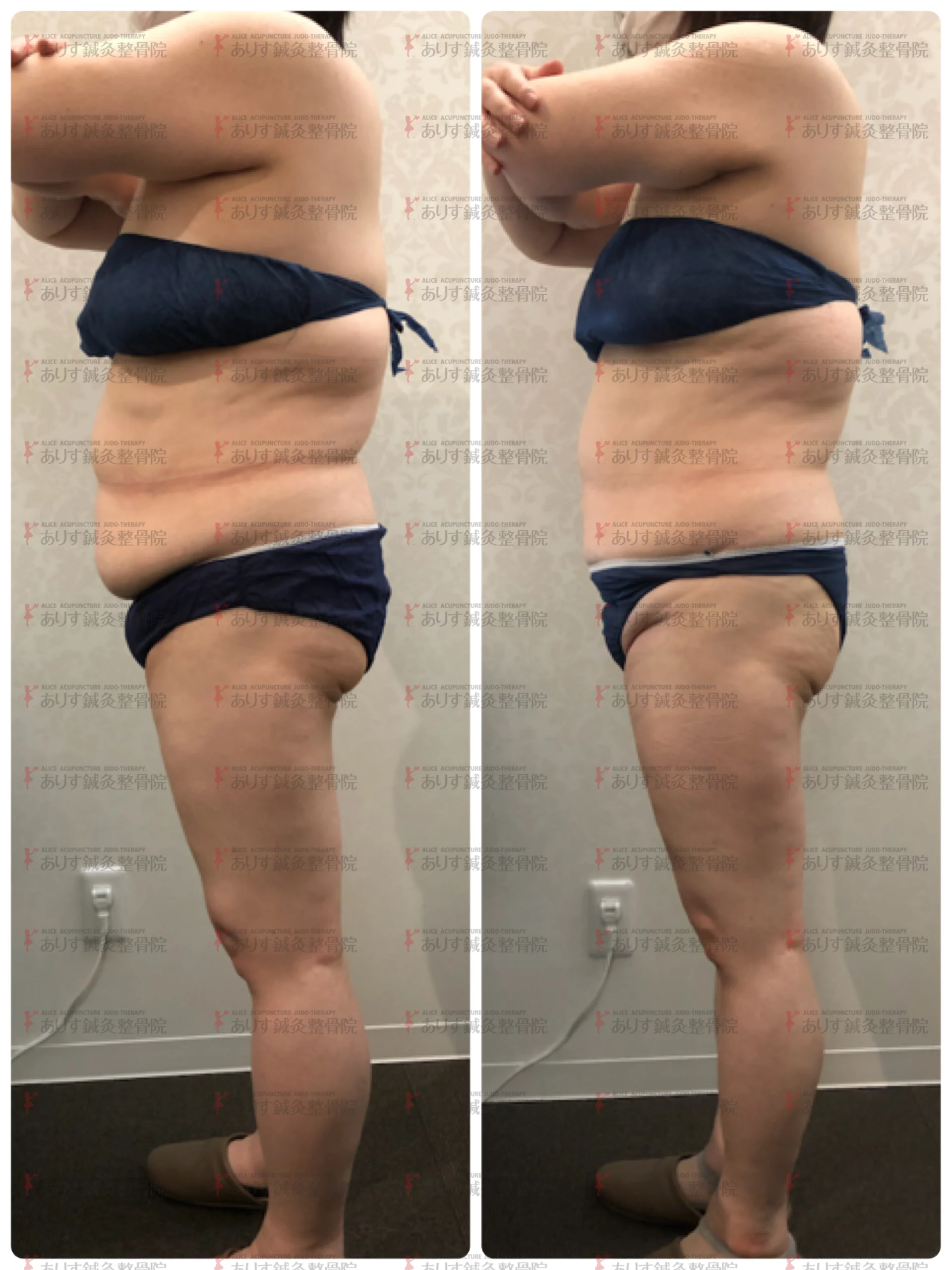 一番気になるお腹は毎週重点的に脂肪冷却やキャビテーションの施術をさせていただき、お腹がスムーズにサイズダウンしたのをきっかけに脚の施術も少しさせていただきました(*^^*)施術するたびに脂肪が柔らかくなり落としやすい状態に♪施術を何度も繰り返し行うことがスピードダイエットの近道です(^_-)-☆
