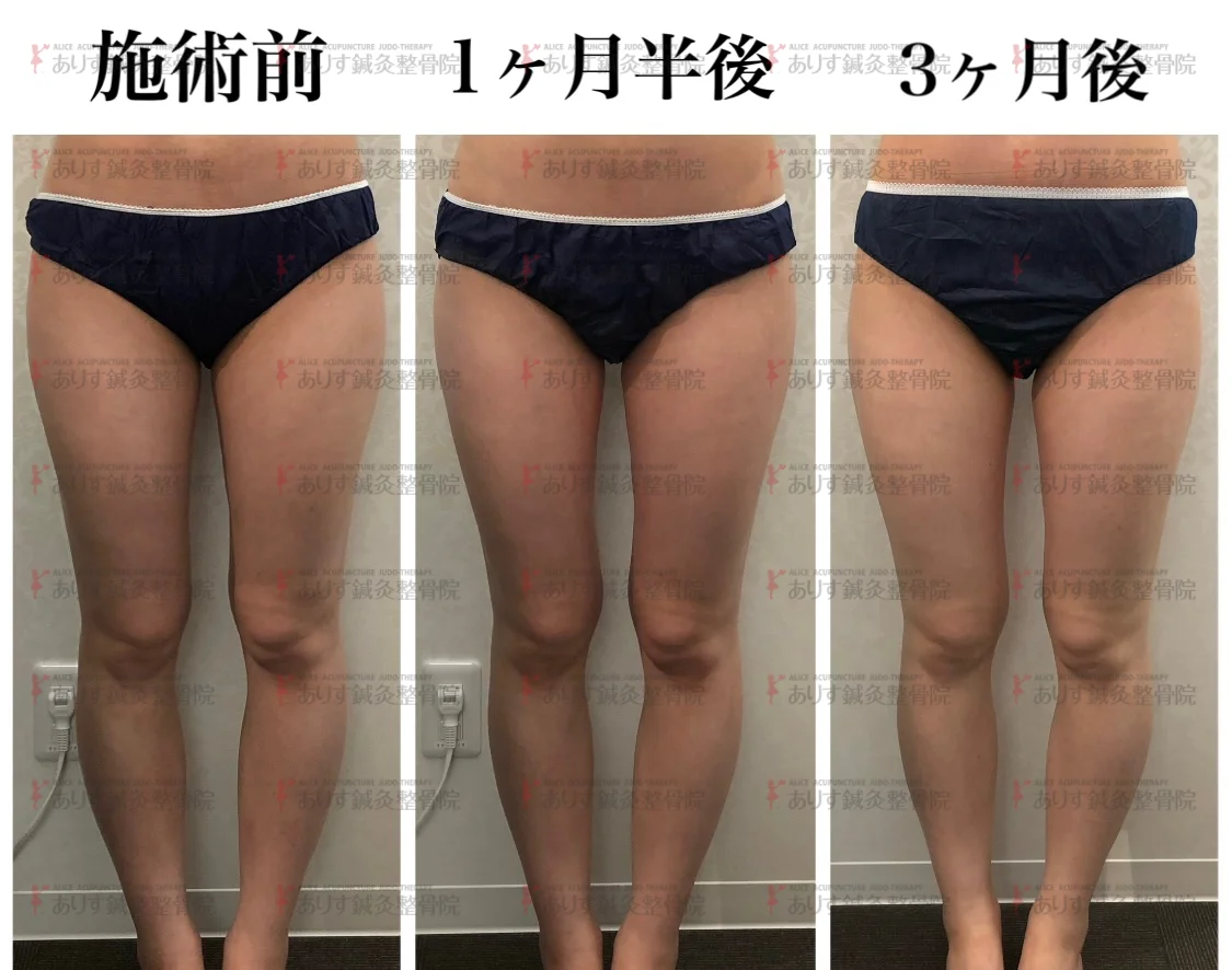 3カ月の間に9回来店くださいました!他のモニター様に比べ来店の回数は少ないですが、ご自宅でマッサージをしたり、お仕事中は意識してたくさん歩いてくださったこともあり、難しい脚痩せもスムーズにサイズダウン♪内ももの脂肪は脂肪冷却でしっかり死滅!!太もものハリも徐々になくなり膝まわりもスッキリされ、より美脚になられましたね(^^)そして脂肪を溶かしセルライトも除去できるキャビテーションの効果でなめらか肌となり、より美白に♪もちろん3枚とも加工無しです!!足のサイズダウンはゆっくりにはなりますが