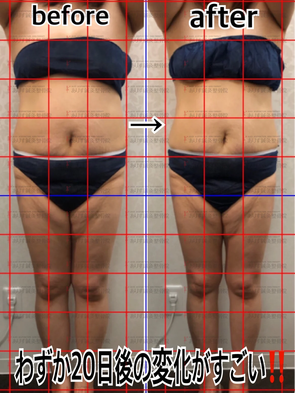 20日間の間、4日に1回というハイペースで来院くださったお客様!!そのおかげで、わずか20日でここまでのサイズダウンです!(^^)!お忙しい中ありがとうございます♪次回からは脚の施術もプラスされるそうで、またまたサイズダウンの予感です♪