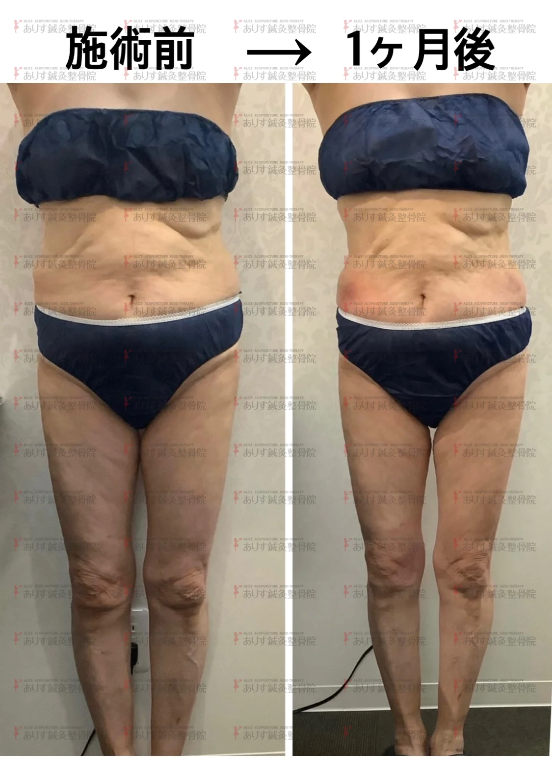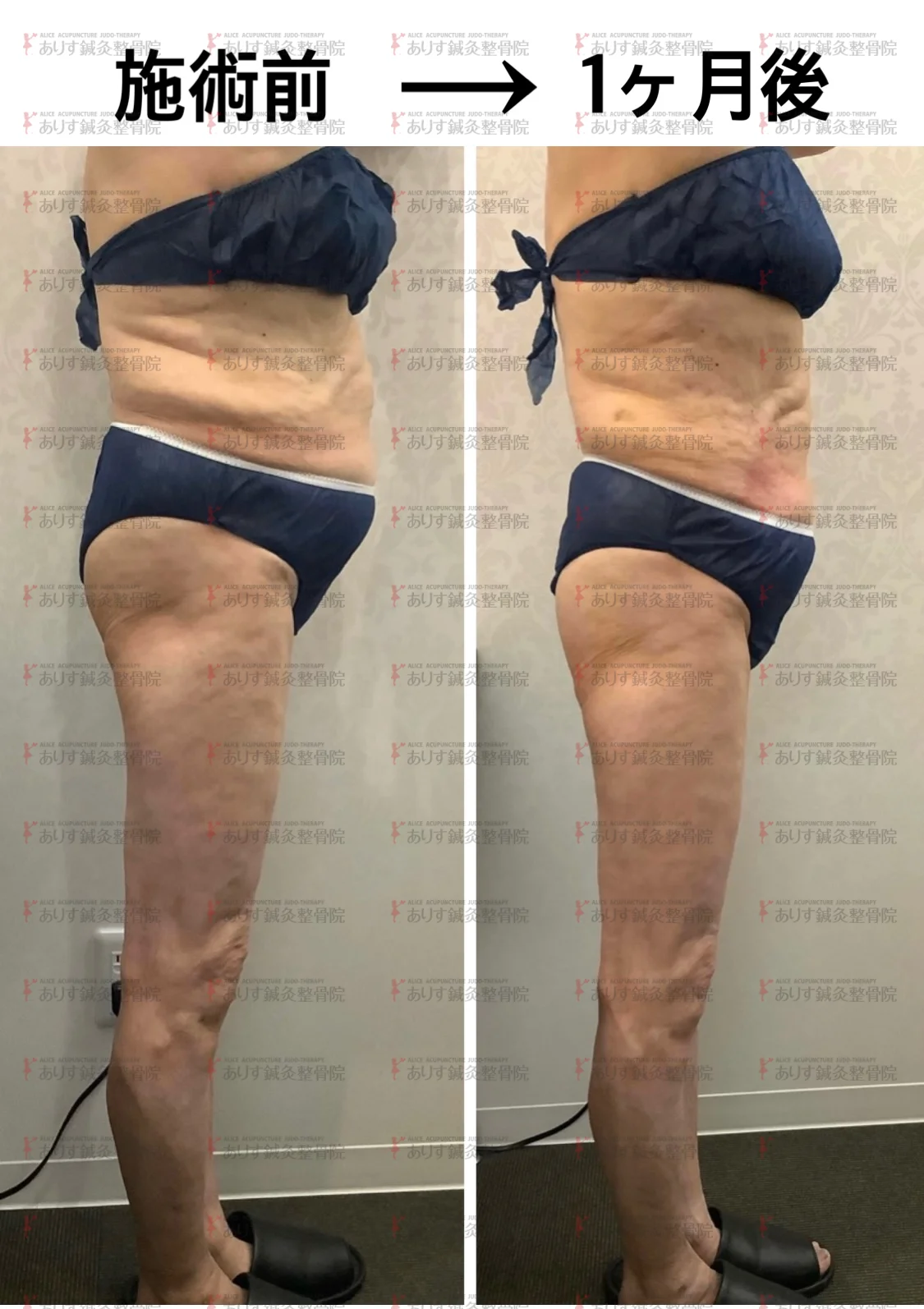 週に1度ご来店していただきモニターコースの施術を受けられました。老廃物の排出を促すために、お風呂ではお腹が真っ赤になるほどモミモミしてたそうです。