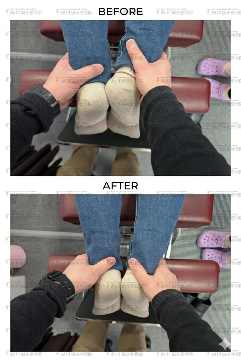 当院ではMさんの症状の背景にある体全体のバランスの乱れに注目しました。膝の痛みや水分の蓄積は、単に局所的な問題ではなく、骨盤や背骨の歪みと連動している場合が多く、そのため一過性の対処だけでは十分な改善が望めません。全体的な調整が必要であると判断し、体系的な施術プランで施術を進めました。